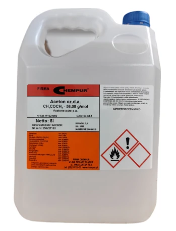 Niektóre związki chemiczne w reakcji z acetonem mogą doprowadzić do pożaru lub wybuchu.