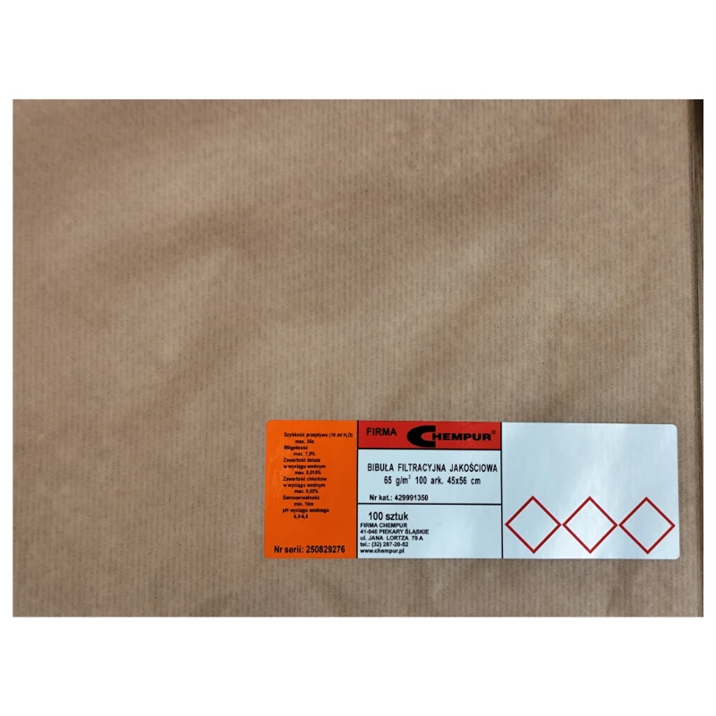 Bibuła filtracyjna jakościowa średnia 65g/m² 450x560mm - Najważniejsze informacje